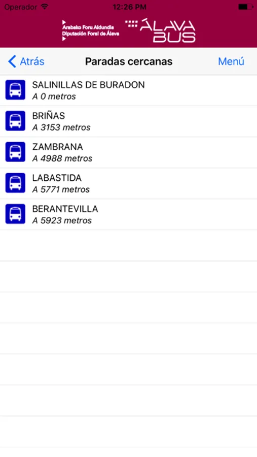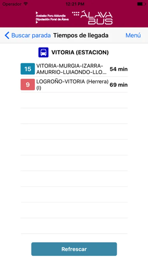 Aplicación que proporciona información detallada sobre paradas, horarios, líneas y tiempos de llegada del transporte interurbano de Araba/Álava.