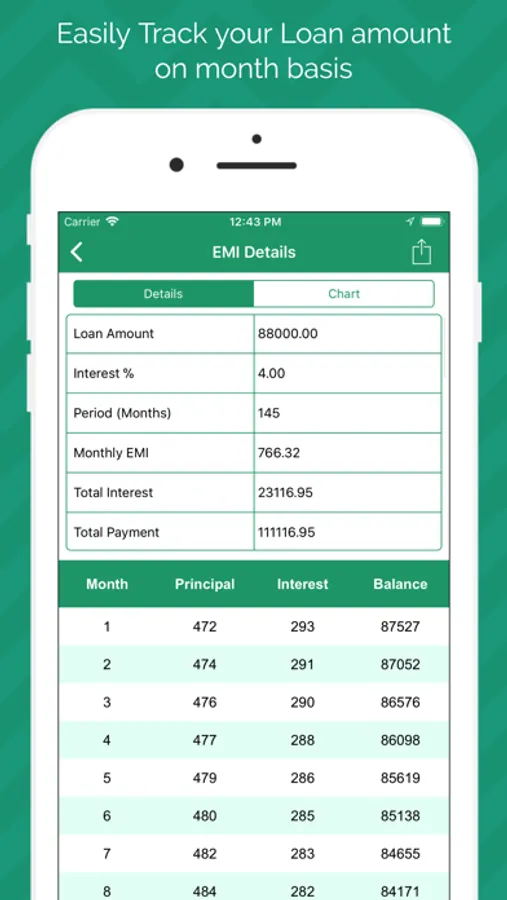 You can calculate EMI for home loan, personal loan, car loan, education loan using this app.
