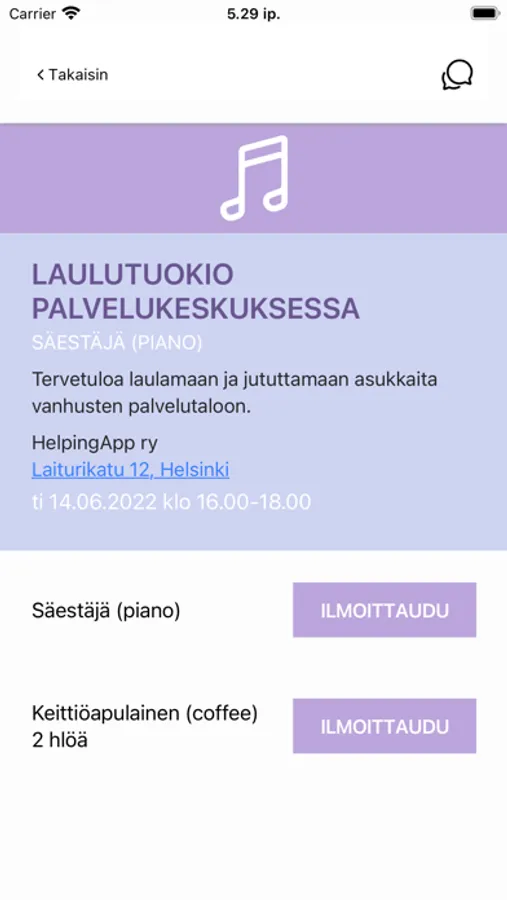 The app includes also a chat, where volunteers can discuss privately with the coordinators. Alternatively a volunteer can start a group chat, where all volunteers can participate and ask or comment about the details of a certain task.