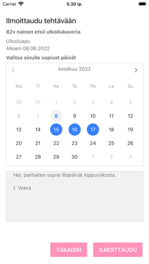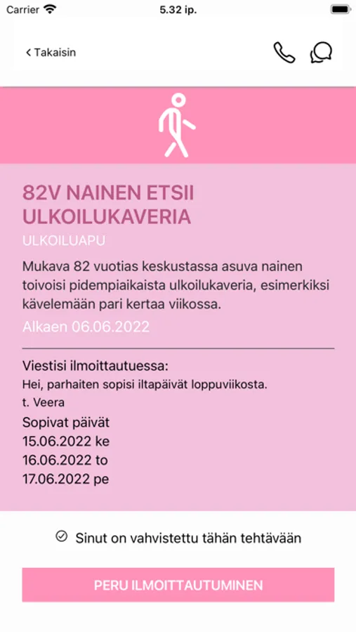 With HelpingApp the volunteers can browse open volunteering tasks and sign up for them. The tasks can be configured so that registrations are confirmed automatically or that the coordinators need to confirm them, after which volunteers will get a push notification to the app.