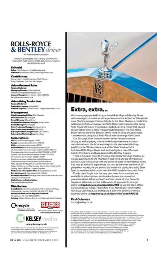 Celebrating two of Britain’s most prestigious automotive marques, Rolls-Royce & Bentley Driver magazine is the definitive quarterly publication for all Rolls-Royce and Bentley enthusiasts and owners. Principally focusing on the classic models of these luxurious car brands, it will offer comprehensive coverage of the most popular versions from both Rolls-Royce and Bentley, ranging from immediately after WW2 up to around the turn of the millennium. Undoubtedly, there will be some coverage of pre-war models, and we will feature modern classics such as the Bentley GT coupe. Whatever the model, however, our aim with Rolls-Royce & Bentley Driver magazine is to offer a mix of owners’ stories, buying advice, technical hints and tips and inspiration on how to restore, maintain, and, crucially, enjoy your favourite Rolls-Royce or Bentley.