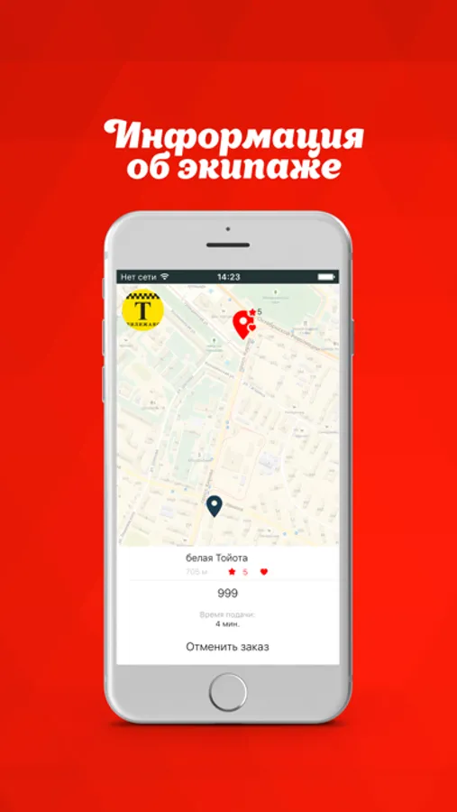 Перед поездкой Вам будут известна детальная информация об экипаже: марка, номер, цвет и время прибытия. После завершения поездки вы можете ознакомиться с её длительностью и расстоянием.