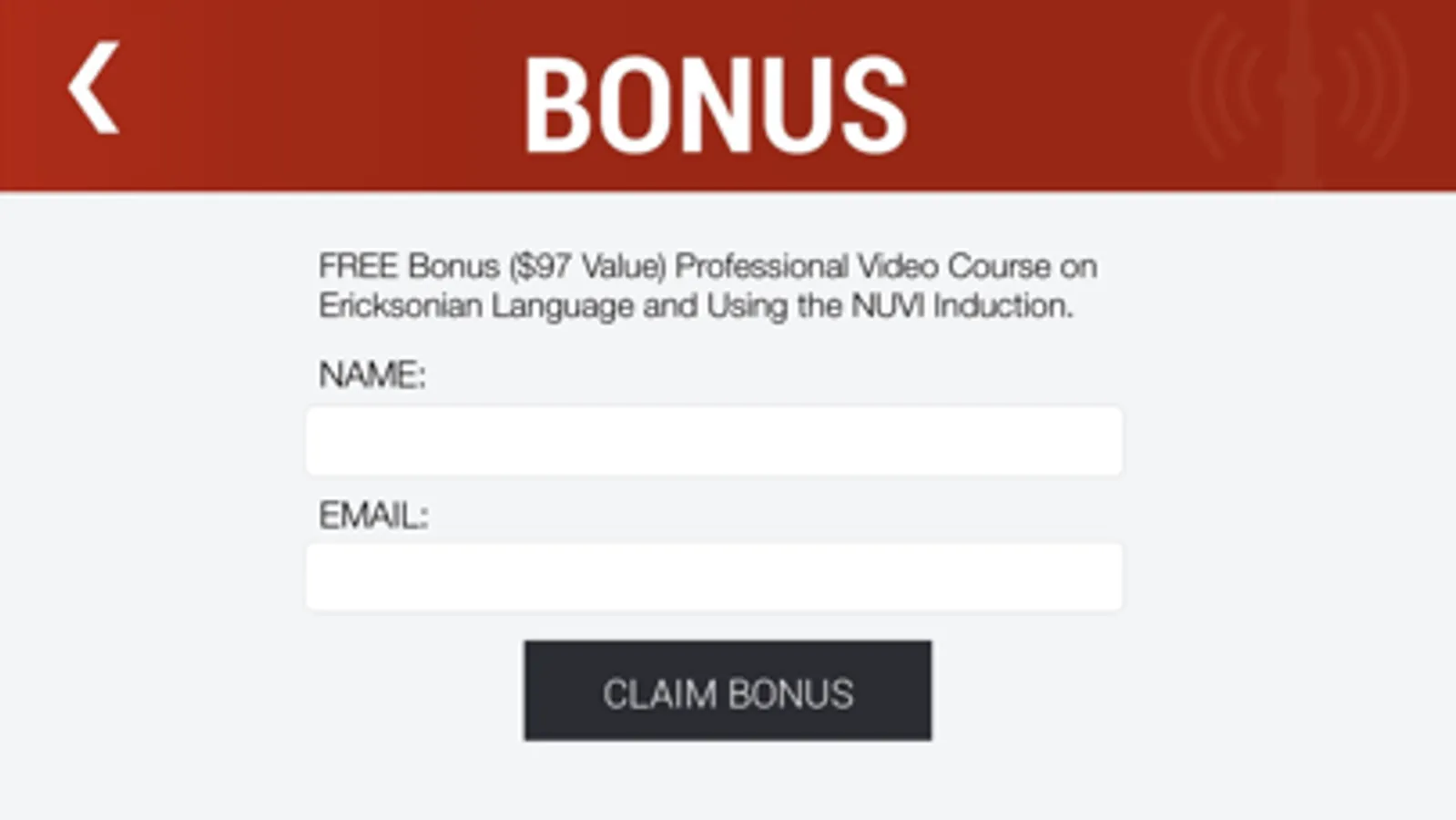IMPORTANT: To get the most from this app be sure to claim the free BONUS video course. It's about 45 minutes of high quality video training to teach you exactly how to use this app to practise your Ericksonian hypnosis skills.
