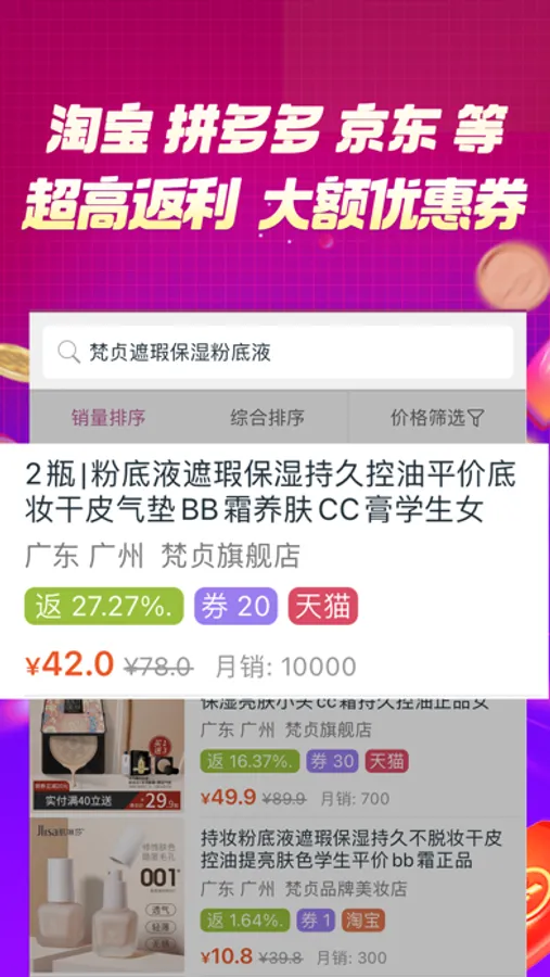 1. 通过百宝袋可查询各商城商品的优惠信息, 如: 优惠券, 返利, 特价商品等.