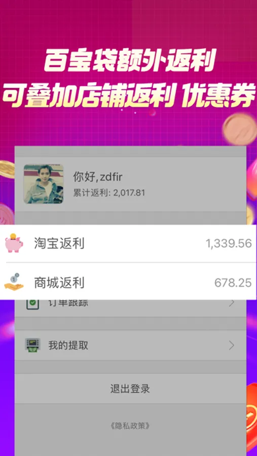 2. 通过百宝袋去各商城购买可以获得返利.