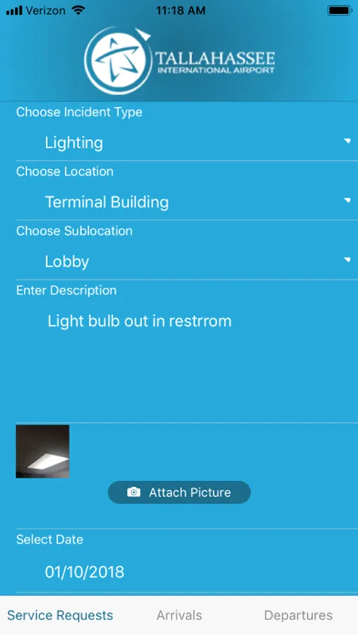 Safety Management System app for reporting service problems at the Tallahassee International Airport
