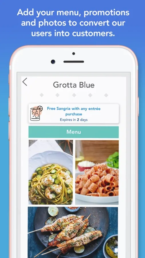 Increase your sales by adding coupons, promotions, and your menu as customers discover your business in person.