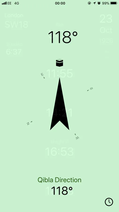 Swipe up for the Qibla Compass to quickly and easily find the direction of Qibla, calculating it based on your location and showing you where it is. When you are facing Qibla, you feel a click and the compass turns green, making it easy to align.