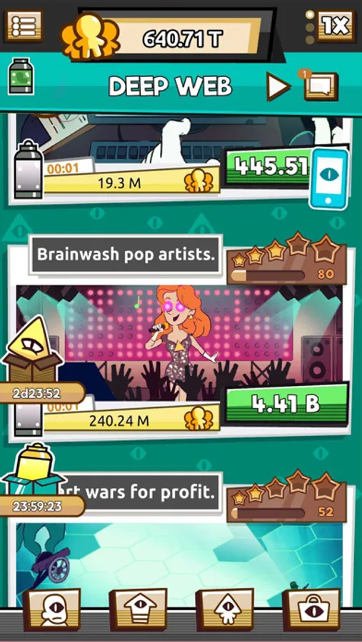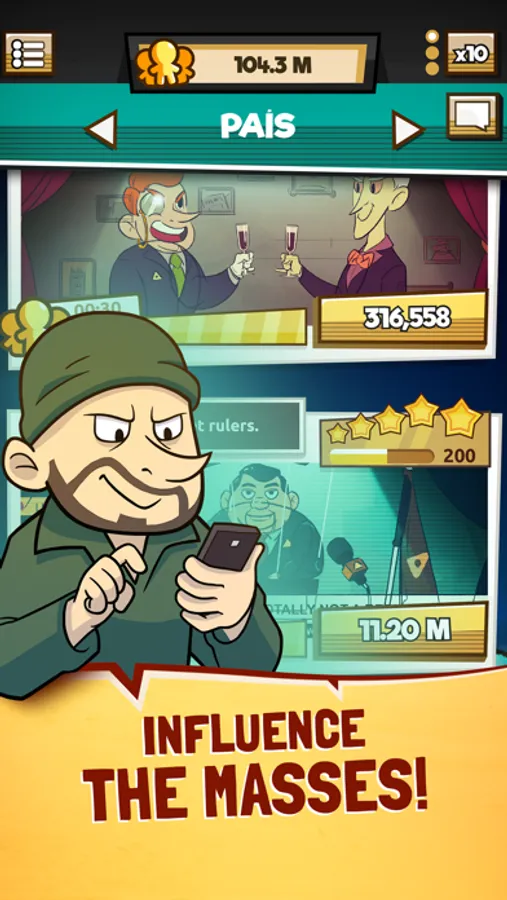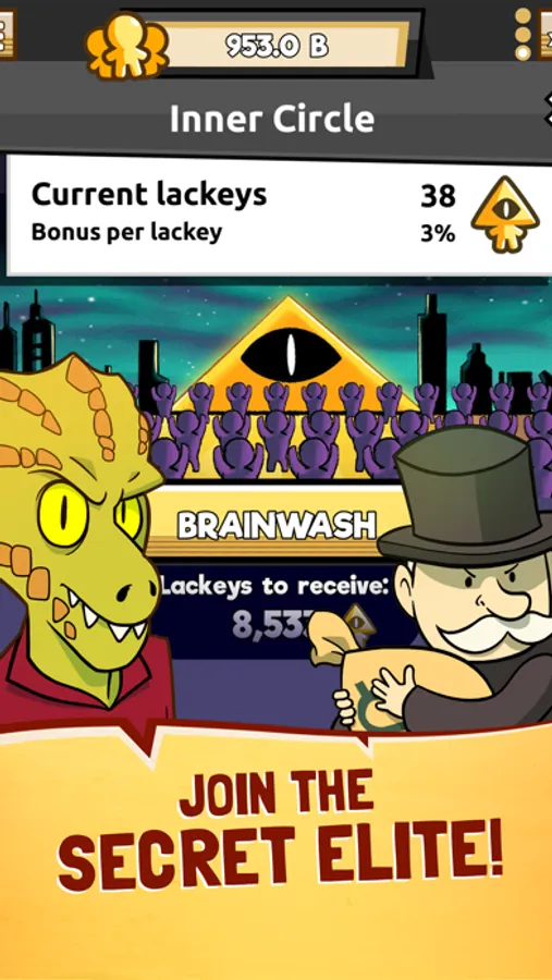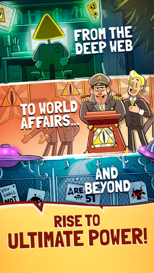Make deals with the reptilians aliens that control world affairs from the shadows, recruit pop idols and Hollywood stars through your not-in-the-least suspicious cult and slowly climb your way to Illuminati big boss status!