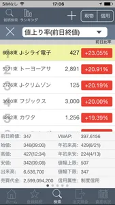 価格や乖離率、急騰・急落などの9種類のランキングを値上り率や値下がり率などの8項目でスクリーニング可能です。業種や市場を区切っての分析もできますので、取引スタイルに合わせた使い方が可能です。