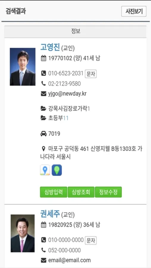 전화걸기, 문자발송, 지도보기, 현재위치에서 길찾기 기능