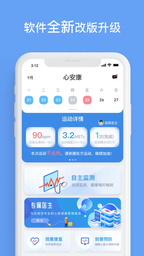 科学、专业的心安康APP来了!创越医疗心安康不仅是您心电数据获取的小帮手,更是您日常心脏康复运动训练的好帮手!