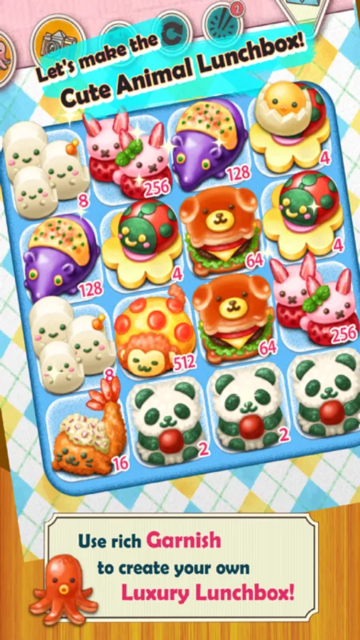 Enrich your lunchbox and make more cute garnishes. Your goal is to make a fantastic "2048 garnish".