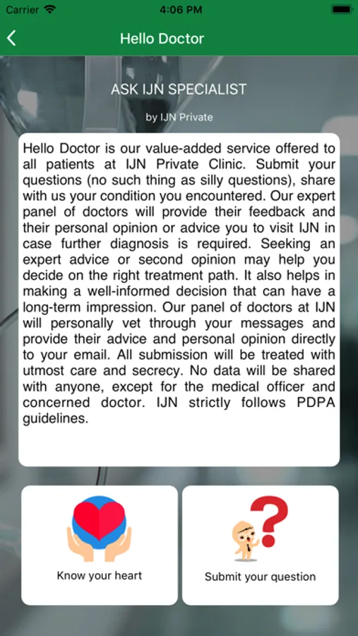 IJN Private app is an initiative from Institut Jantung Negara as part of its plan to serve all private paying heart patients. IJN Private Clinic now provides all its services and facilities at one exclusive floor, giving patients an unrivalled experience of healthcare convenience. Whatever your medical needs-from consultation to admission, health screening to medication-all is made accessible. We also offer laboratory, diet consulting and sleep study. We offer competitive prices for outpatient service treatment. We make an effort to reduce medical charges and medication prices through ‘deliberative negotiation’ to acquire better prices for drugs medication and equipment from the suppliers. This app will assist you in making an appointment with a heart specialist, booking your preferred health and wellness packages or you may even our doctor for second opinion and question about your heart. This is an exclusive service provided to all patients for free.