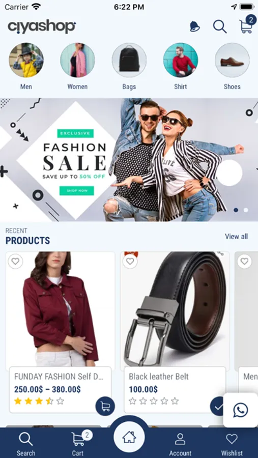 The CiyaShop iOS App is easy to use. Download it for free and enjoy shopping anywhere, anytime. Categories such as Man,Woman,Kids,Sport etc.