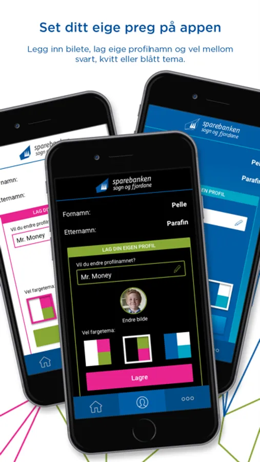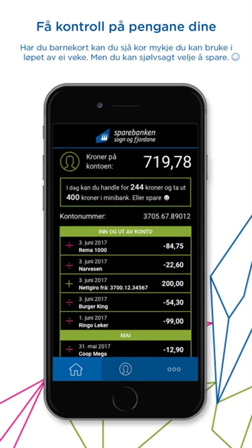 Med Mobilbank Ung kan du sjå kor mykje pengar du har på kontoen din, og kva som går ut og kjem inn til ei kvar tid. Er du mellom 8-12 år kan du også sjå kor mykje du kan handle for eller ta ut i minibank kvar veke. Vel mellom fleire fargetema og set ditt eige preg på appen.
