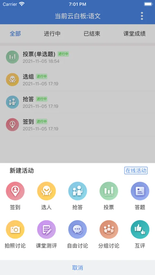 11、参与互动:学生可参与抢答、照片墙、自由提问、截屏提问等互动环节;