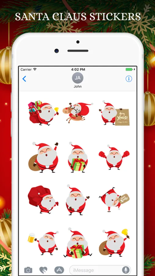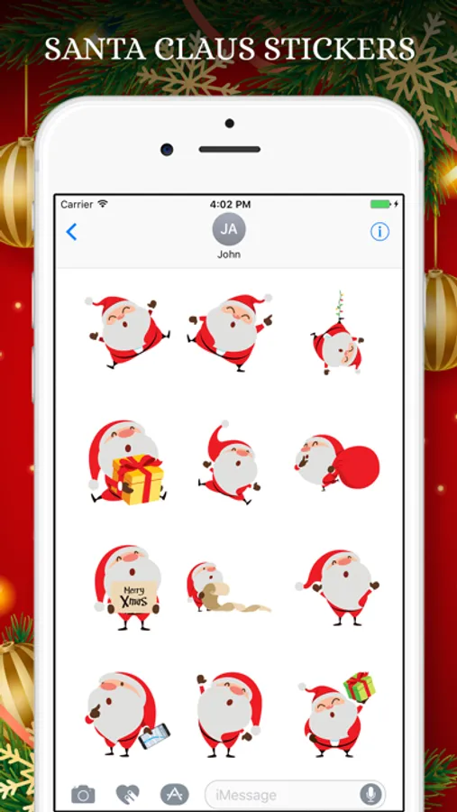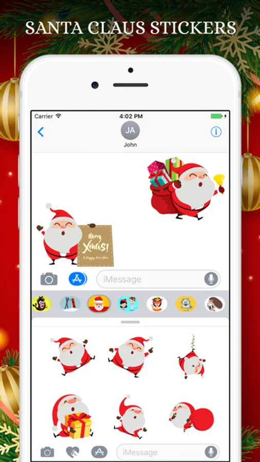 Santa Claus Stickers Pack! is a collection of the best high quality of Santa Claus's stickers for iMessages. All our stickers have been personally ranked & selected so you can personalize your chatting with your favorite Santa Claus !