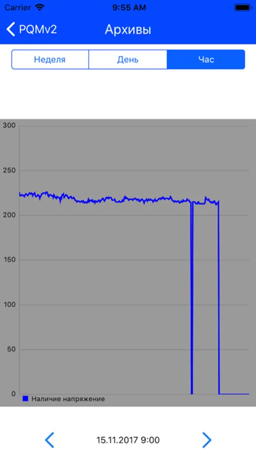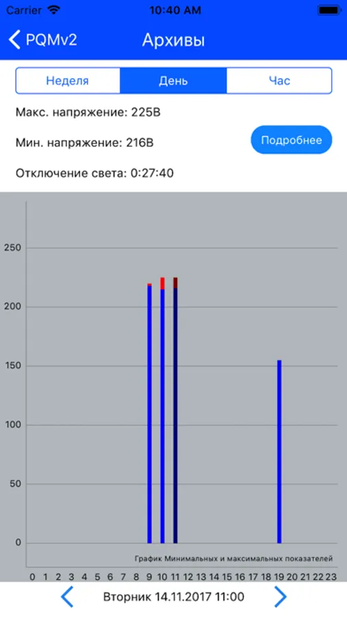 Ведение истории напряжения в сети за прошедшую неделю с интервалом до 10сек;