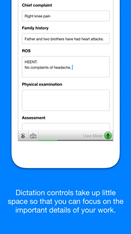 Fluency Direct is now accessible from your personal device keyboard. Your Fluency Direct voice profile and custom template commands are available to dictate medical text into any app on your mobile device.