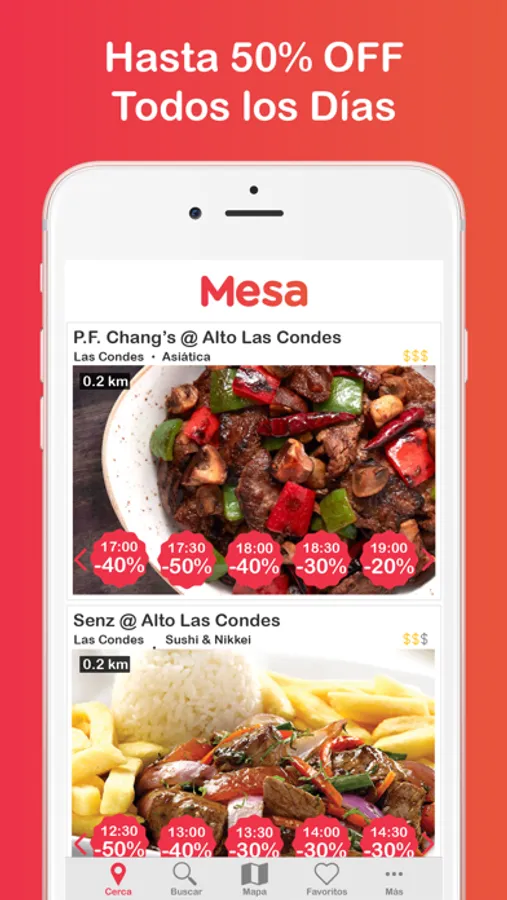 Con Mesa puedes comer en restaurantes con hasta 50% de descuento todos los días.