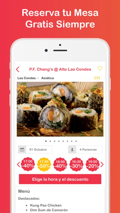 ¡Todos los restaurantes ofrecen hasta 50% descuento en toda la comida de la carta!