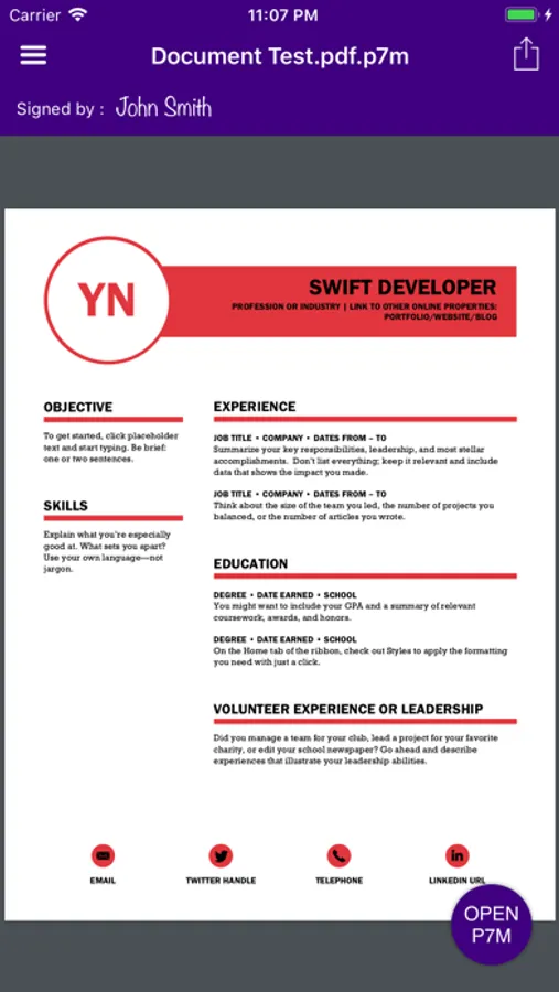 Import P7M files from cloud apps, Files, Mail or Safari.