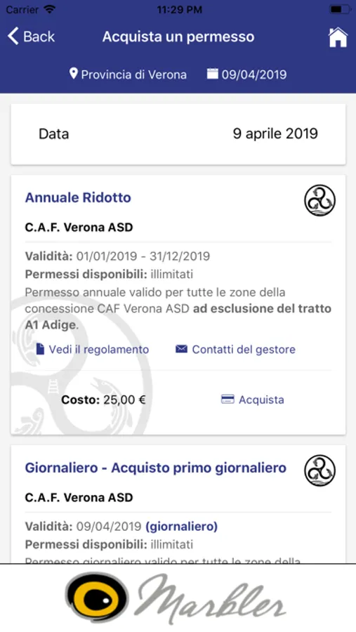 Hooking è la prima app in Italia per l'acquisto e la gestione dei permessi di pesca.