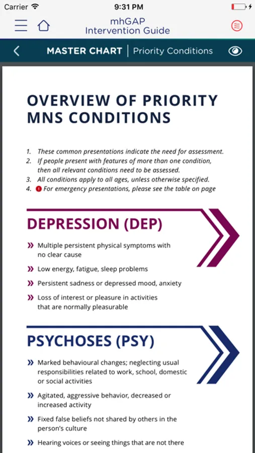 mhGAP-IG 2.0 App (e-mhGAP) is the official e-version of the World Health Organization’s mhGAP-Intervention Guide for mental, neurological and substance use disorders in non-specialized health settings Version 2.0. The mhGAP-IG 2.0 App is a valuable tool to scale up services for people with MNS conditions and their families.