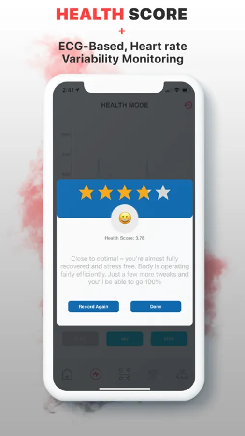 Health Score (Heart Rate Variability): We took the complexity of heart rate variability and created a user-friendly Health Score, based on the star system. By recording your HRV for just two minutes, you will receive a Health Score based on 5 stars. What makes the AIO Sleeve the best HRV monitor is that it’s the only product/app that uses an ECG to calculate heart rate variability. All other apps use a standard optical (BPM) sensor.