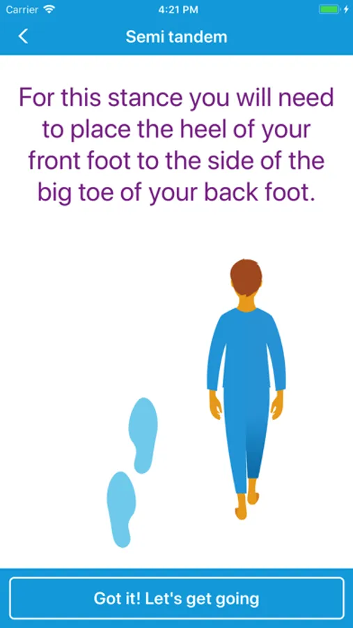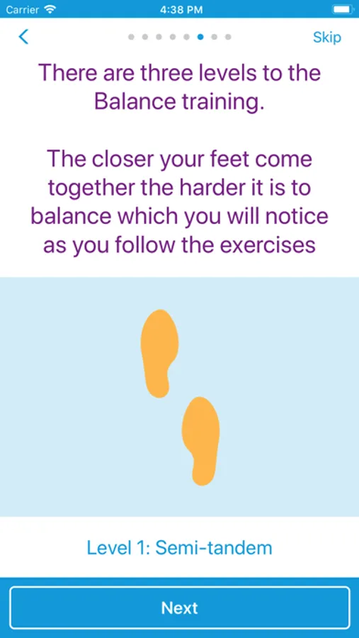 There are three levels to the Balance training. The closer your feet come together the harder it is to balance which you will notice as you follow the exercises