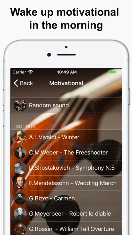 - That's amazing alarm clock application for all fans of classical music. Classical music that will improve your motivation every morning.