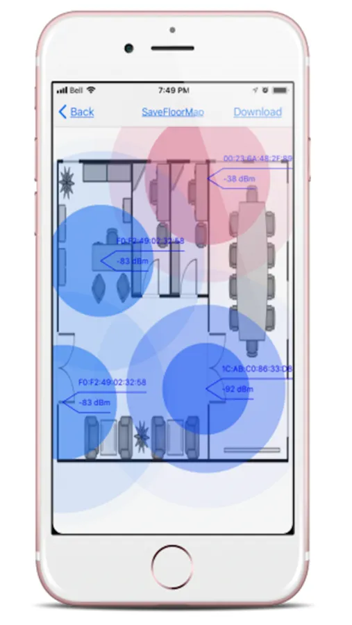 A typical RF survey tool generate heat map by collecting AP signal level either from very expensive handheld device or by laptop attached with a USB WiFi adapter, both rely on the 3rd party WiFi adapter antenna gain NOT by real client(iOS)’s own antenna gain, what’s more, this way is too “heavy” for a quick and easy RF survey.