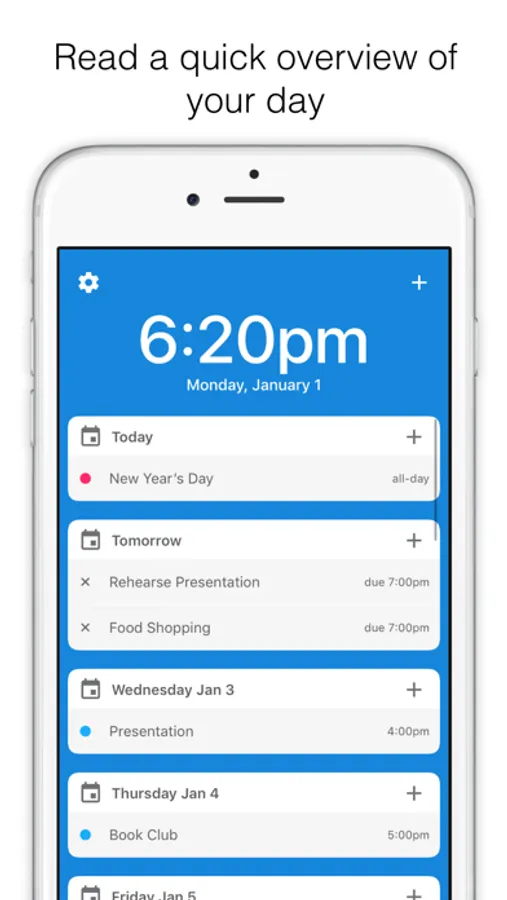 Day Plan is the new way to organize your day. It combines your reminders and events into one convenient place, and makes adding new ones a breeze! Schedules, meetings, assignments, deadlines: Everyone has them. Keep track of them with Day Plan. With Day Plan, there's no more frustration of figuring out your schedule for today, simply look at today's events and reminders. Need to know what's happening tomorrow? Find out in a glance.