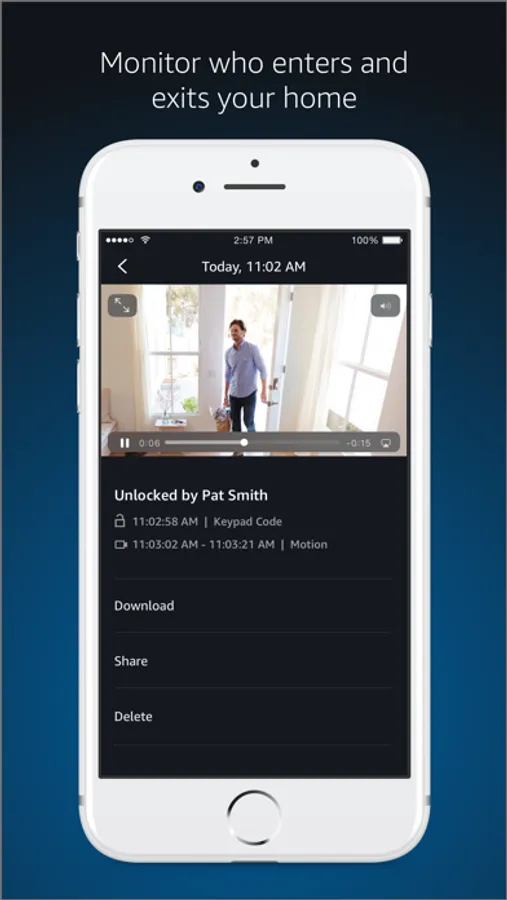 Securely share, monitor (live stream or clips) or block access to your home. Prime members in eligible areas, can select eligible orders for secure unattended delivery just inside your door.