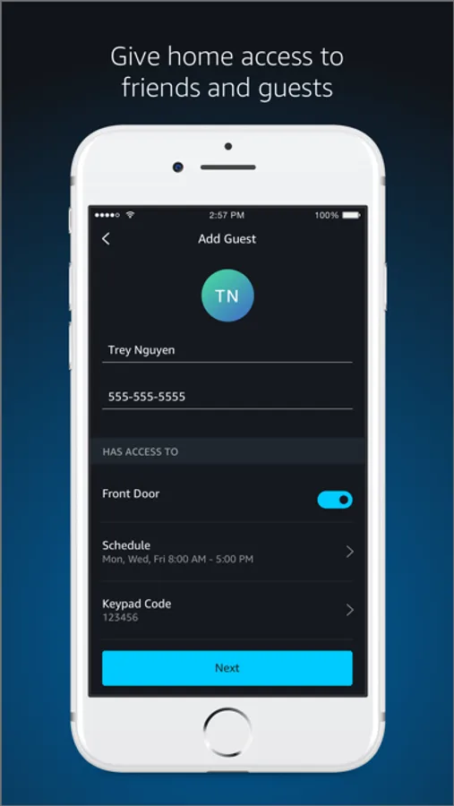 3. Manage keyless entry, grant defined access for friends, family or guests.