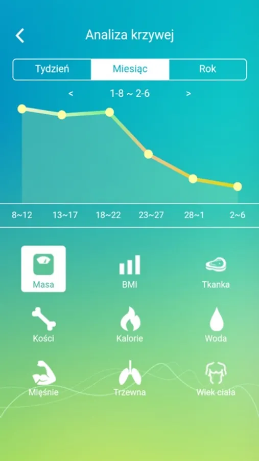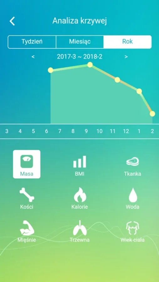 Dzięki funkcji analizy krzywej aplikacja prezentuje w formie wykresu szczegółowe dane w podziale na tygodnie, miesiące lub lata.