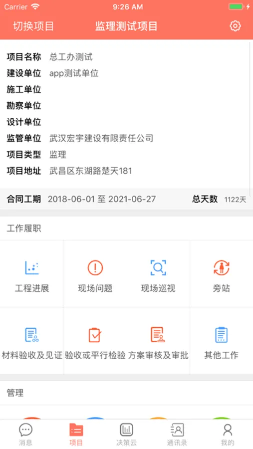 2、通过【问题发现】【旁站】【项目进展】【方案审核】【项目日志】等8种类型如实记录工程师的履职行为。