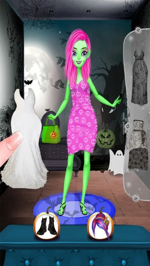 First of all click the Halloween game and click to play button. You will go to character selections. You have four options Alisha, Afreen, Jezebel and Hezal. Than you will go Spa view & makeup. You have many types of Halloween dress up. In this game we are representing the new thing about Halloween room decoration with new ideas, different views and wallpapers.