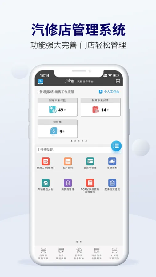 1、小车车是一款汽配和汽修ERP 后台管理系统的APP;
