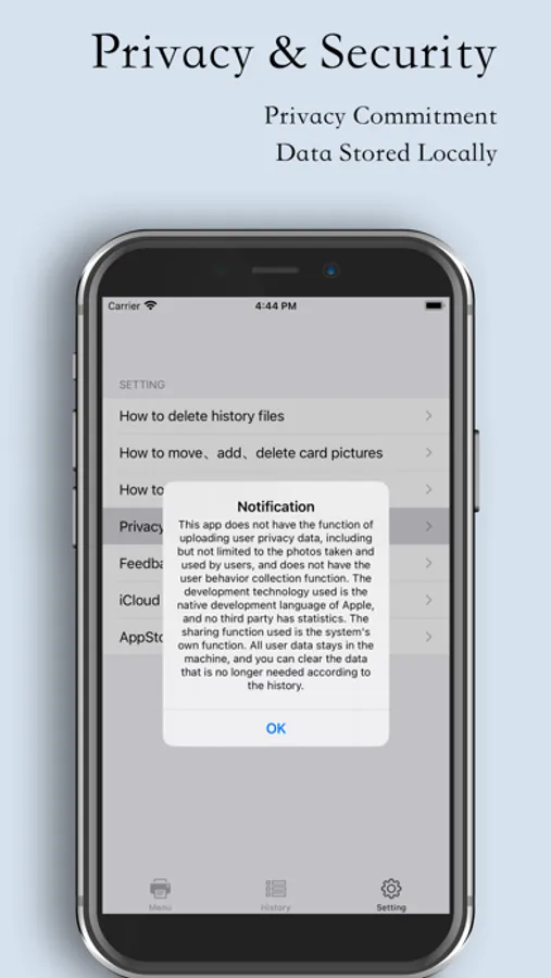 This software does not collect any user privacy data or user behavior data, and all data is stored locally. All data only exists with this machine, and the sharing function is the built-in system function of iOS.