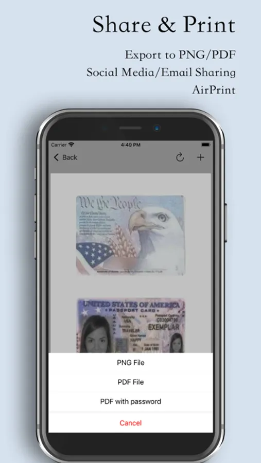 "Finally I found this kind of software that directly turns the ID card in the photo into the A4 printing function. In the future, I don’t need to print the ID card and other documents in the typing company. I hope that the developer can add a graduation certificate, marriage certificate, practice certificate, etc. Credential function."