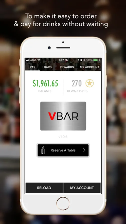 - Load funds to your VBar App with any major credit card or Apple Pay