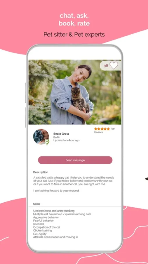 Finally, you can RATE pet professionals in an app and thus help other pet owners to find a good service! At the same time, you can contact any pet professional directly through the app.