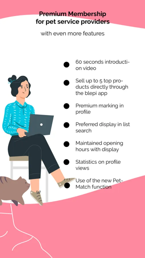 blepi supports service providers, because they are important for all pets and horses. That's why you can open a free pet business account so that your offer will be found faster. Being part of the business community not only brings you up-to-date marketing and business tips, but also gives you the opportunity to inspire customers about your offer directly online. For this purpose, select the appropriate category with which your pet business will be listed at blepi and get verified to underline the seriousness and quality of your offer.