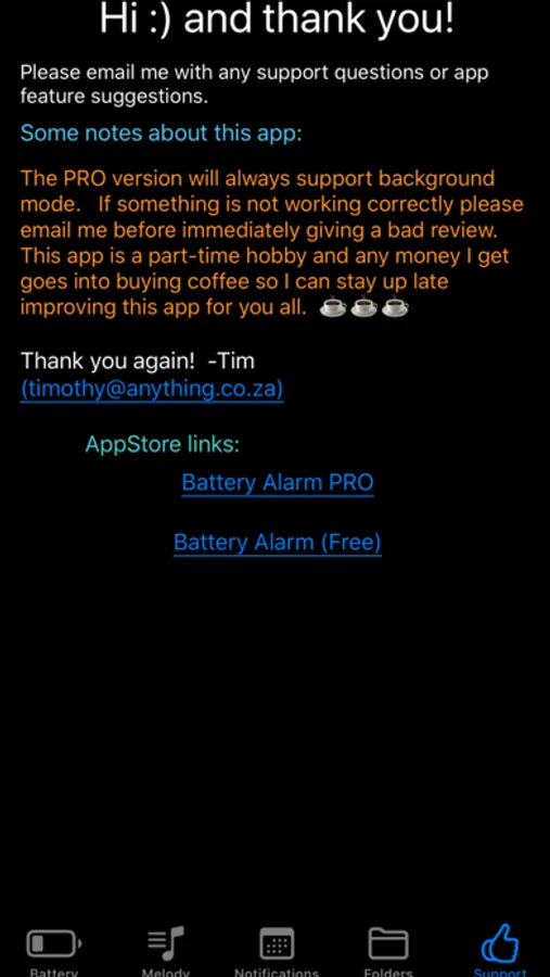Contact the developer for any suggestions & support timothy@anything.co.za