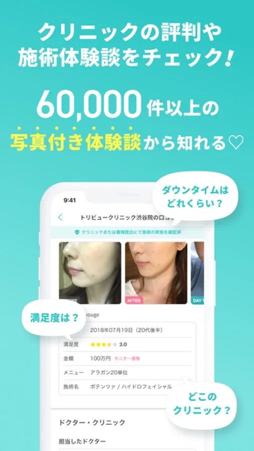【利用者満足度98%*の美容医療・整形の口コミ予約アプリ】