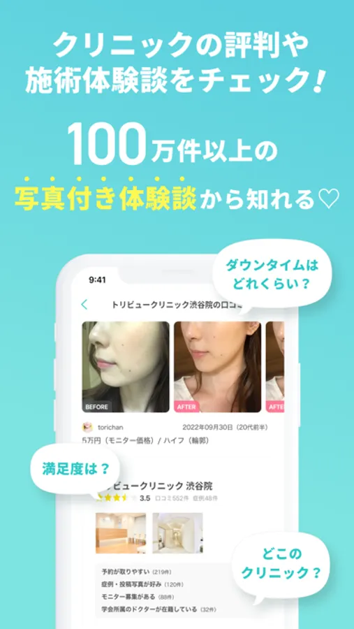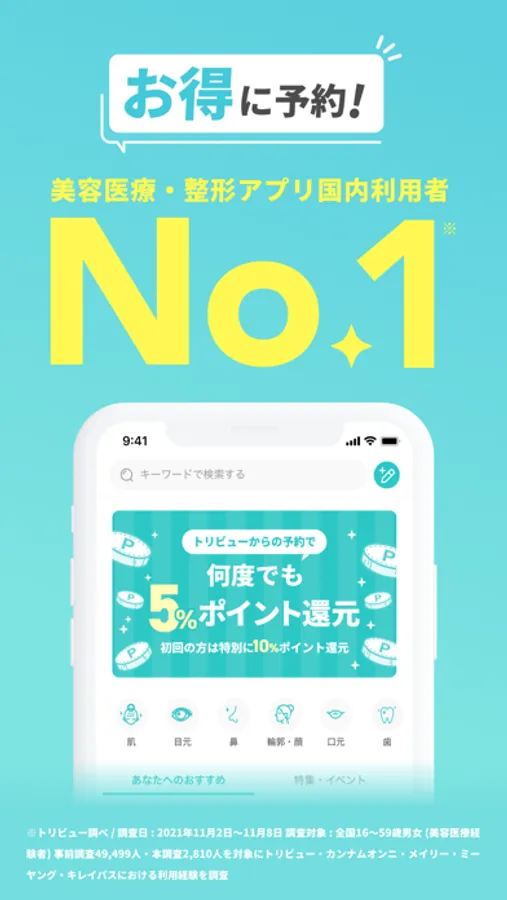 【国内利用者数No.1*の美容医療・整形の口コミ予約アプリ】