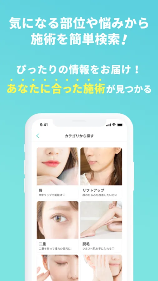 やりたい施術・行きたいクリニックが見つかるアプリです。