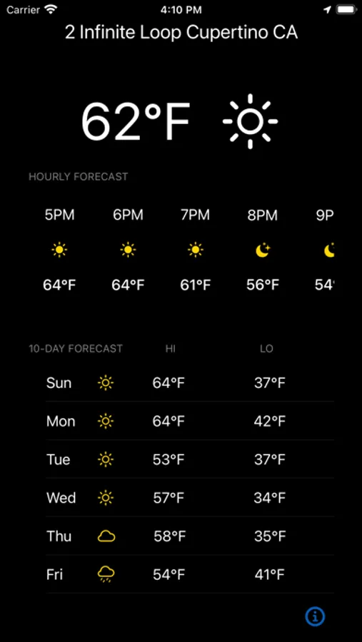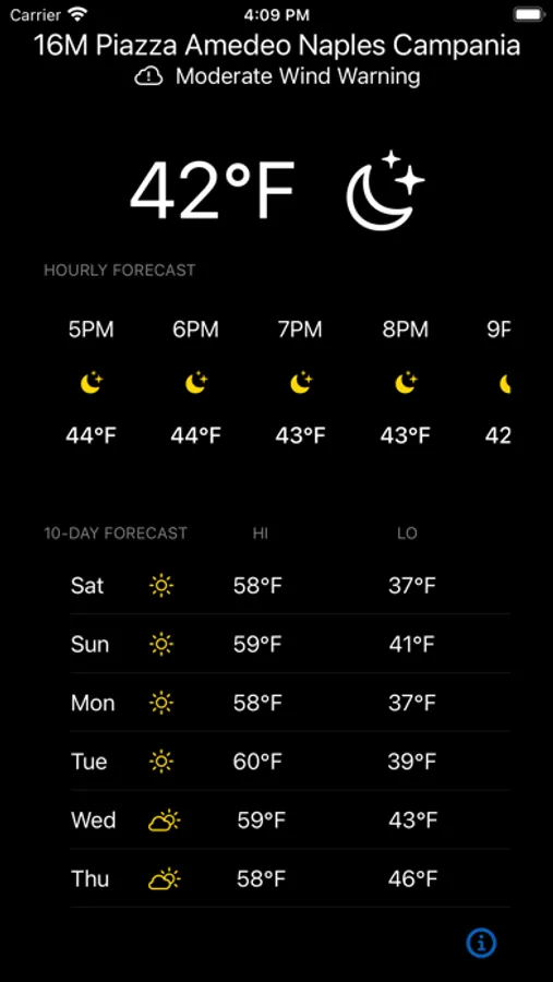 Currently provides your current local weather conditions at a glance without having to wade through endless charts and figures.